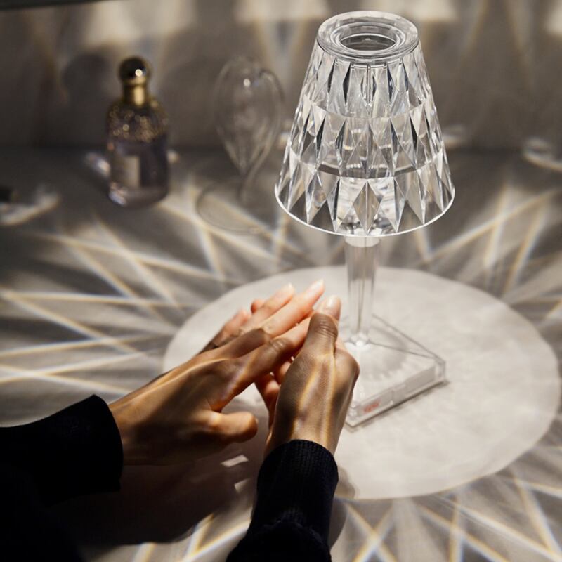 典型的なランプシェードのかたちを元に、コンテンポラリーな技術を組み合わせた照明です。5時間の満充電で6時間点灯します。